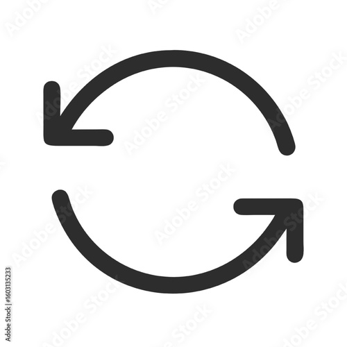 Minimalist Circular Arrows Icon Representing Refresh, Reload, Cycle, and Repeat Functionality for Digital Interfaces