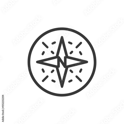 Minimalist Compass Rose Icon with Dashed Detail and Circular Border