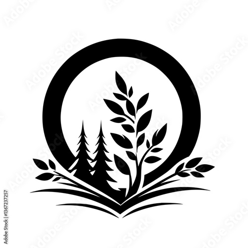 Minimalist Forest Logo: Circle, Trees, & Foliage