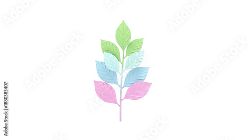 Minimalist gradient leaf branch on white background