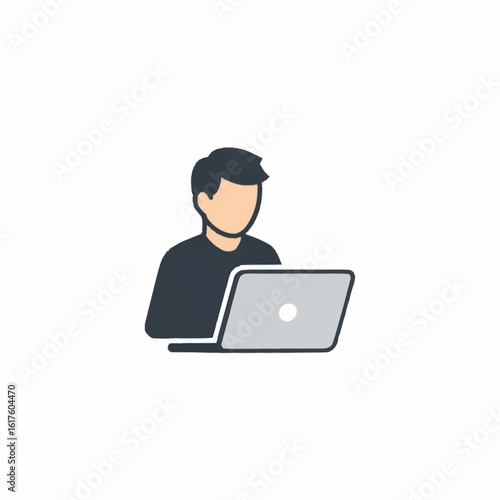 Minimalist icon of a person using a laptop computer, a symbol for digital work, freelancing, and online learning.