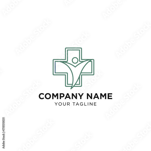 Minimalist Medical Cross with Abstract Human Figure Logo Design.