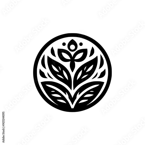 Minimalist Organic Plant Emblem - Black and White Circle Icon
