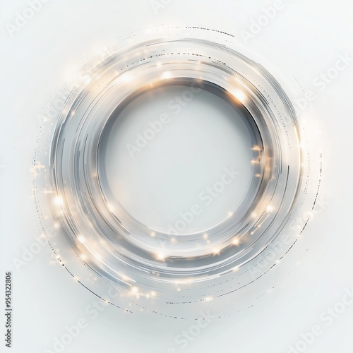 Minimalist Technology Circle with Embedded LED Lights and Glowing Edges, Digital Rendering with Clean Lines and Soft Gradients on White Background