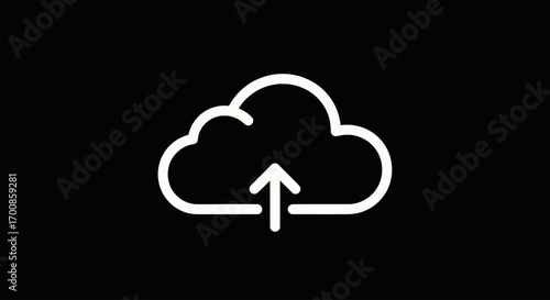 Minimalist Upload Vector Icon with Cloud and Arrow Line Art
