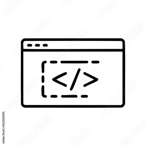 Minimalist web development icon with html code in browser window – stock vector icon in line style