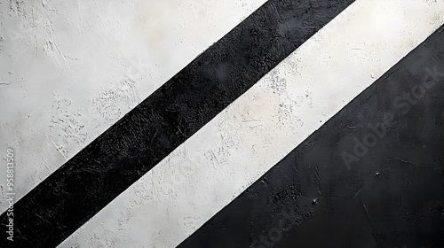 Minimalist White Canvas with Black Diagonal Stripe and Subtle Arrow Pattern