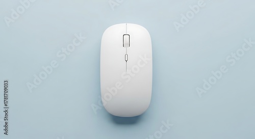 Minimalist White Computer Mouse on Light Blue Background.