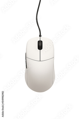 Minimalist White Wired Computer Mouse – Top-Down View with Clean Design on White Background