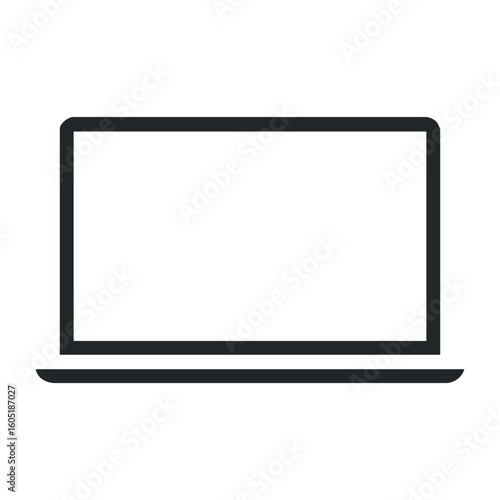 Minimalistic black and white laptop icon on white background. Vector illustration