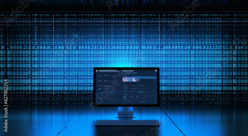 minimalistic coding on the screen, hi tech, realistic, minimal, blue color