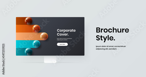 Minimalistic landing page design vector template. Creative computer display mockup website illustration.