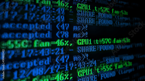 Mining Cryptocurrency process program on display PC. Using Software. Share Found.