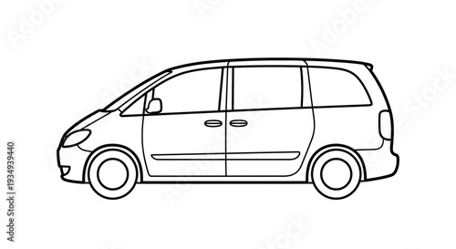 Minivan outline drawing, side view