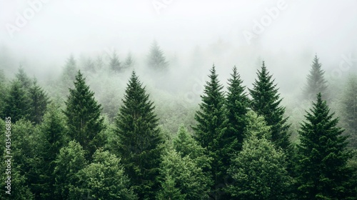 Misty mountain forest with lush evergreen trees