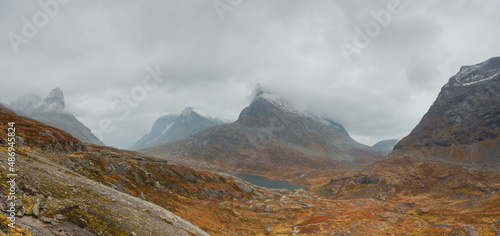 Misty mountains on a rainy day. Norway