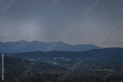 Misty mountains range with amazing sky