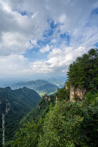 Misty rock pillars and mountain landscape in Zhangjiajie, Hunan Province, China