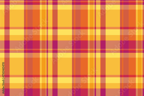 Mixed fabric texture textile, primary check vector pattern. Independence day plaid background seamless tartan in red and orange colors.