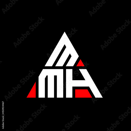 MMH triangle letter logo design with triangle shape. MMH triangle logo design monogram. MMH triangle vector logo template with red color. MMH triangular logo Simple, Elegant, and Luxurious Logo. MMH