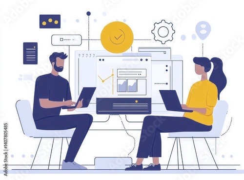 Mobile App Development Collaboration Digital Project Illustration