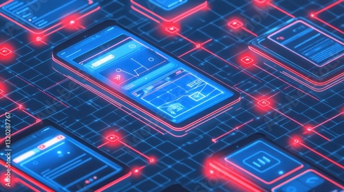 Mobile App Wireframe Prototype Isometric Vector Art Modern Design UX UI Flowchart Connection Node Development