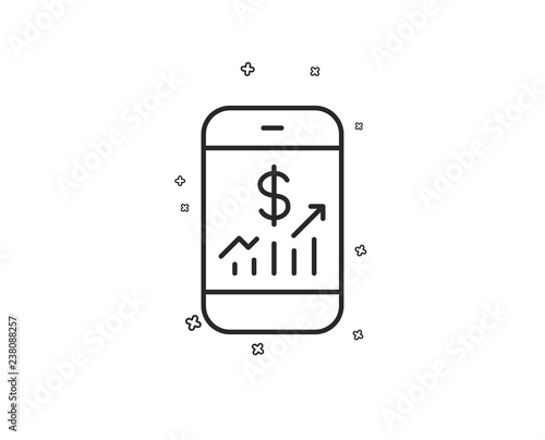 Mobile finance line icon. Business audit sign. Check investment symbol. Geometric shapes. Random cross elements. Linear Mobile finance icon design. Vector