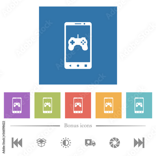 Mobile gaming flat white icons in square backgrounds