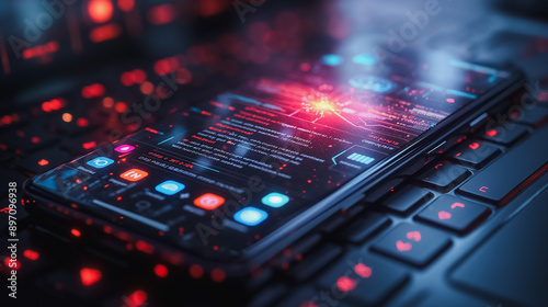 Mobile phone and laptop use for data protection and cybersecurity, including privacy security, data encryption, and secure internet access, featuring cutting-edge software technology.