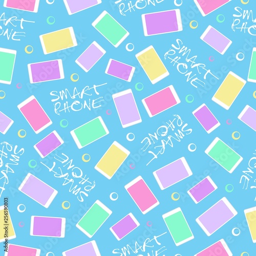 Mobile phones on a blue background. Seamless pattern. Vector illustration.