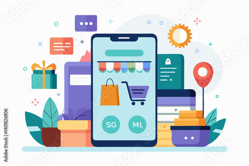 Mobile shopping app interface with product categories and offers