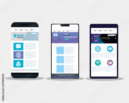 mockup responsive web, concept website development in smartphones vector illustration design