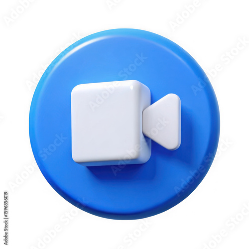 Modern 3d blue circle icon with white video camera isolated on transparent background
