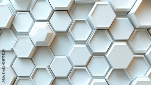 Modern 3D Hexagonal Geometric Pattern in White. Generative AI