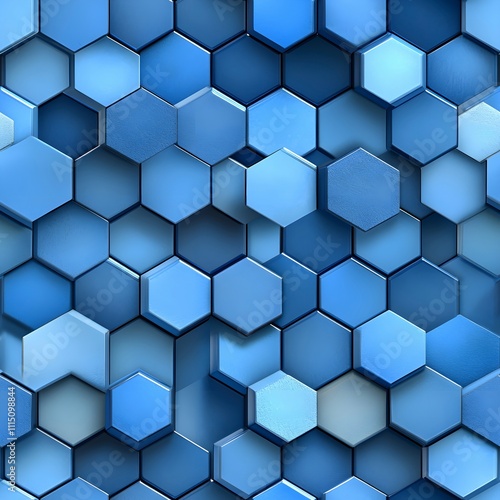 Modern 3D Hexagonal Pattern in Shades of Blue, Featuring Geometric Shapes with Depth and Shine, Ideal for Futuristic Backgrounds, Technology-Inspired Designs, and Stylish Wall Art.