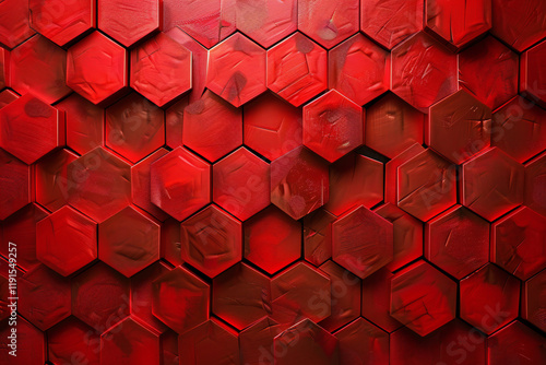 Modern 3D Red Hexagonal Tiles Pattern with Geometric Design for Abstract Digital Art Background