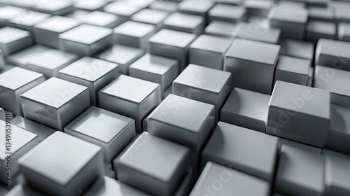 Modern 3D rendering of square-shaped objects arranged in a structured grid pattern with a sleek finish