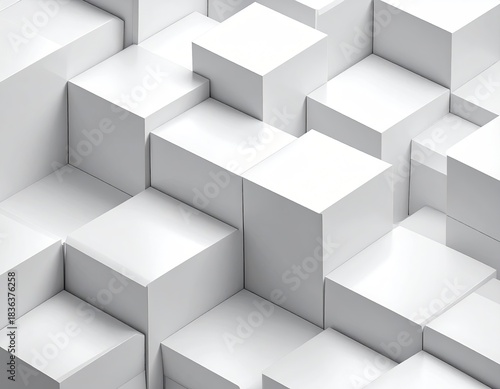 Modern abstract 3D artwork. Clean white cubes create a geometric pattern