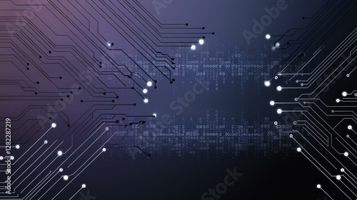Modern Abstract Digital Illustration Circuit Lines Binary Code Dark Purple Background - Futuristic Technology, Data Visualization, Connectivity Web App Design