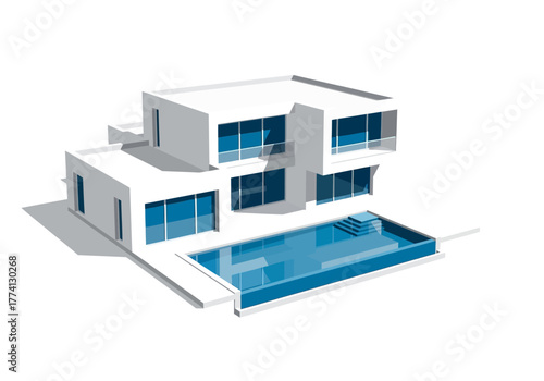 Modern Architectural Gem Minimalist House with Pool Illustration