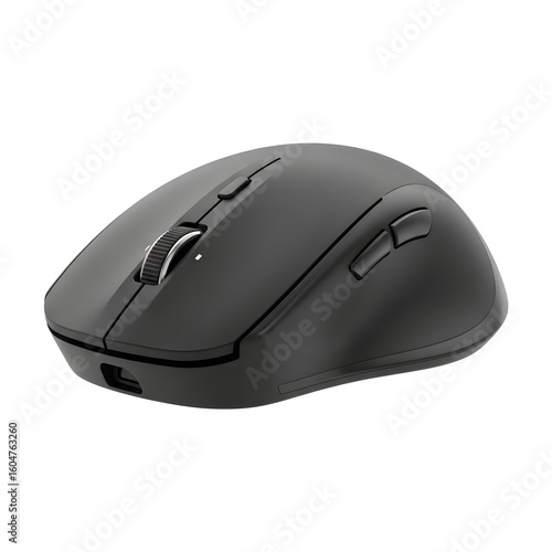 Modern Black Wireless Computer Mouse with Scroll Wheel.