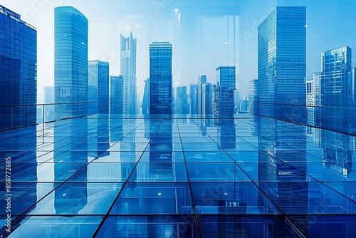 Modern city skyline with skyscrappers and reflection created with Generative AI