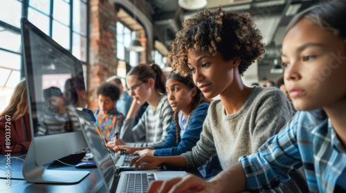Modern Classroom: Teacher Using Interactive Math Software to Educate Tech-Savvy Students with Engaging Lessons