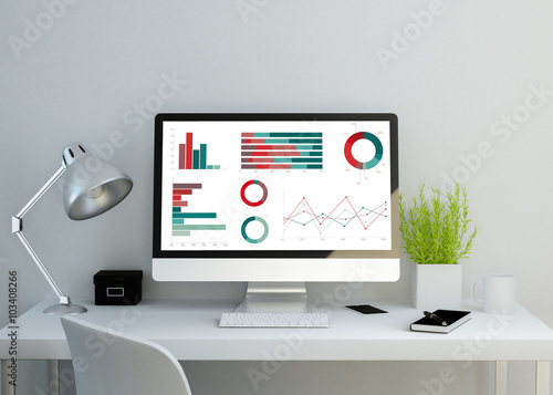modern clean workspace showing charts and graphs on screen