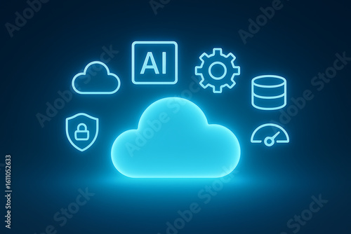 Modern cloud computing and AI data security icons for business and technology solutions