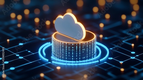 Modern Cloud Computing Concept with Cloud Icon Over Data Storage and Digital Lines on Dark Background