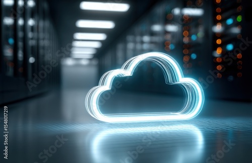 Modern Cloud Computing Data Storage Technology Concept with Digital Cloud Icon in Data Center Environment