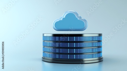 Modern Cloud Storage Concept with Stylized Cloud over Data Server in Bright Minimalist Background