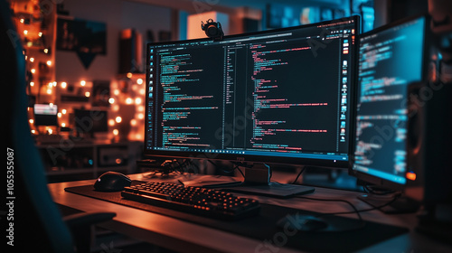 Modern Coding Setup Dual Monitors Code Dark Background