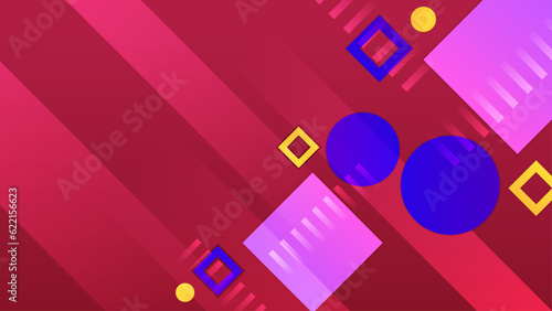Modern colorful abstract geometric banner background. Tech banner with square, triangle, circle, and geometric shapes. Vector abstract graphic design banner pattern background template.